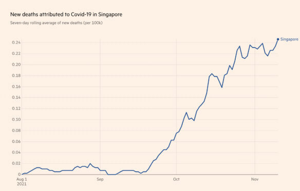 And how are we to explain Singapore, which is going through a wave of COVID deaths even though the weather is similar all year round (it is on the equator) and it has a very high vaccination rate: