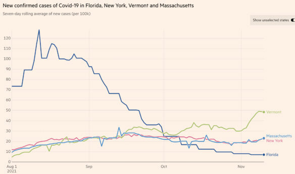 Meanwhile, in US states, the most vaccinated states (like Vermont and Massachusetts) are going through a surge while Florida is now one of the safest states in the country.